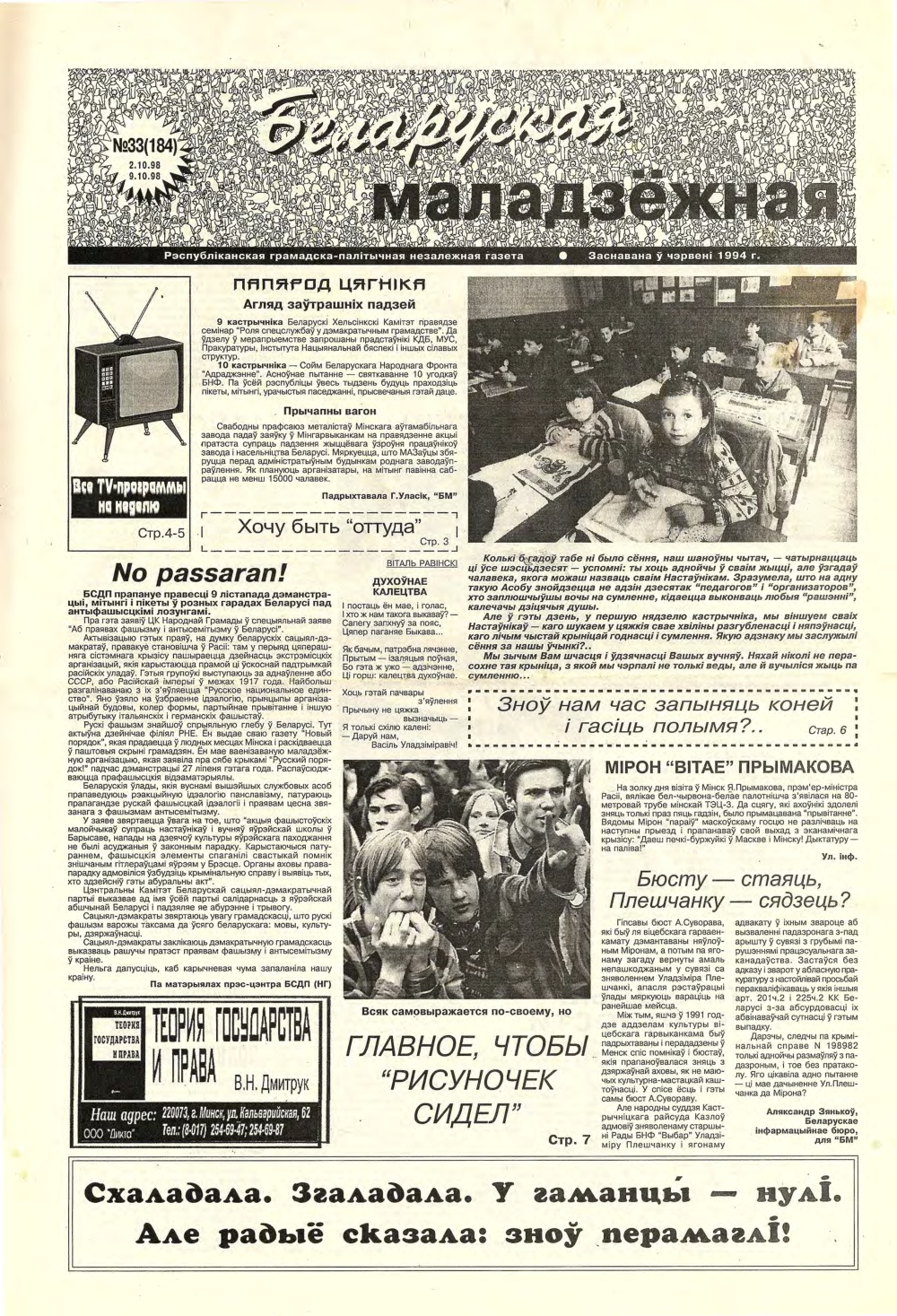 «Беларуская маладзёжная» (1994 - 2002) — беларуская газэта, дадатак да аднайменнай радыёстанцыі. Зарэгістраваная ў сакавіку 1994 году. У ёй друкаваліся расшыфроўкі радыйных гутарак, анонсы этэраў і ўсё, што не зьмяшчалася ў радыёфармат. Калі радыёстанцыю зачынілі, газэта засталася. Галоўны рэдактар — Тацьцяна Мельнічук. Традыцыйны фармат — 8 старонак А3. Газэта асьвятляла нараджэньне й разьвіцьцё палітычнай апазыцыі сярэдзіны-канца 1990-х, дзейнасьць незарэгістраваных моладзевых аб'яднаньняў з усіх бакоў палітычнага сьпектру, сачыла за разьвіцьцём й актуальным станам альтэрнатыўнай моладзевай культуры Беларусі. З 1995 па 1998 рэдакцыя газэты праводзіла у Менску вулічны рок-фэст «Купальле з Беларускай маладзёжнай». Апошні нумар выйшаў у чэрвені 2002 году. У кастрычніку 2003 году пасьведчаньне аб рэгістрацыі было скасаванае міністэрствам інфармацыі РБ. Крыница: be-tarask.wikipedia.org
