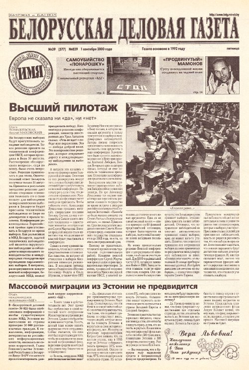 Белорусская деловая газета (829) 2000