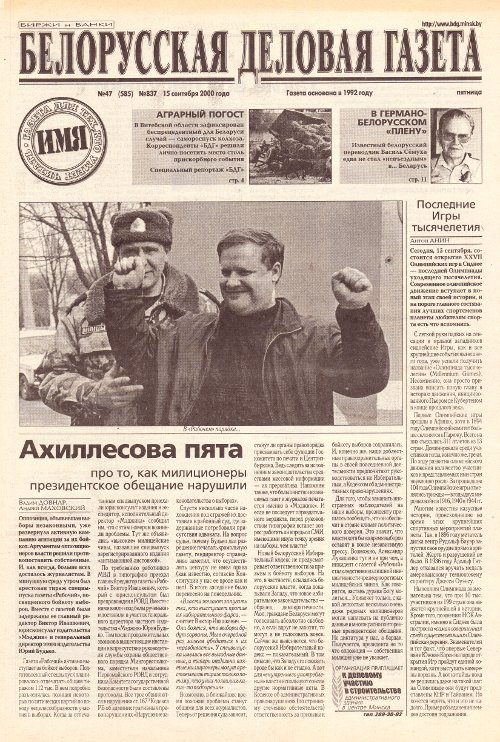 Выдаўцы і выдавецтвы: Белорусская деловая газета