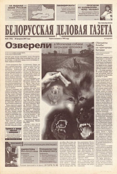 Белорусская деловая газета 26 (922) 2001