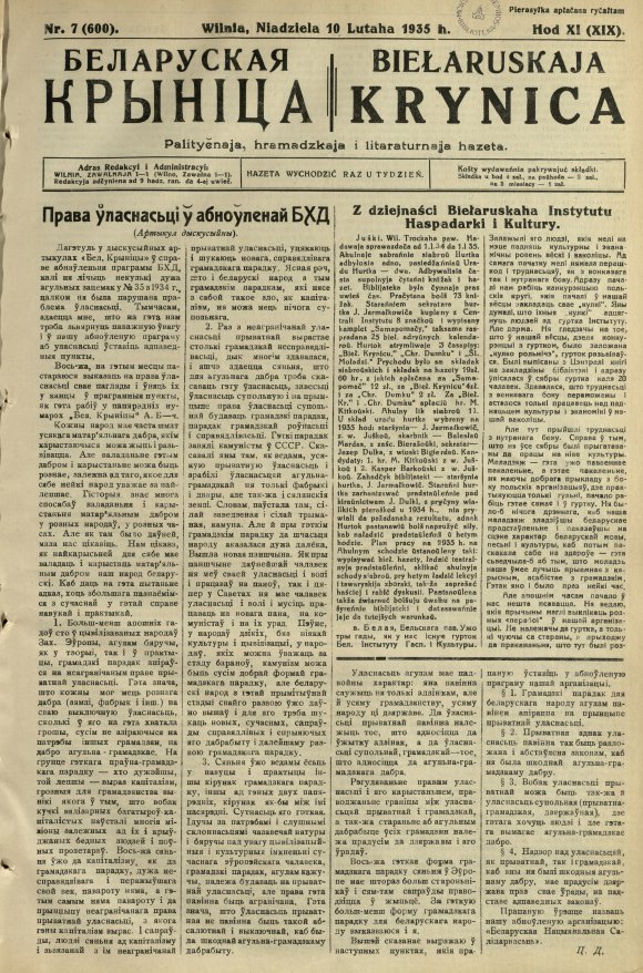 «Беларуская крыніца» («Крыніца» да 1925 і пасля 19 лістапада 1939) — штотыднёвая газета, орган Беларускай хрысціянскай дэмакратыі. Выдавалася на беларускай мове (то лацінкай, то кірыліцай, то двума шрыфтамі адначасова — 1934—1939), у Петраградзе (з 21 красавіка 1917), у Вільні (7 верасня 1919 — 12 ліпеня 1940, не выходзіла: 15 красавіка 1937 — 16 лістапада 1939), у Мінску (#3, 1918). Выйшлі 768 нумароў. У першай палове 1920-х канфіскавана 9 нумароў, за перыяд выдання ў Вільні канфіскавана 58 нумароў. Прапагандавала ідэю адраджэння царкоўнай уніі, увядзення беларускай мовы ў каталіцкай царкве, кансалідавала вакол сябе беларусаў-католікаў. Рэдактарамі ў розны час былі Т. Вайцяховіч, В. Васілеўскі, В. Грыневіч, М. Грачанік, У. Знамяроўскі, Я. Пазняк, А. Станкевіч, Л. Сярмяга, Б. Туронак.Крыніца: be.wikipedia.org