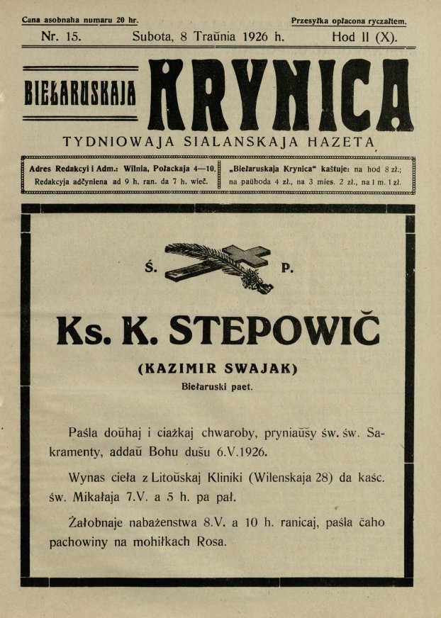 • Выдавецтва/ друкарня: Tow. Wyd. "POGOŃ", Druk. "PAX", Wilno