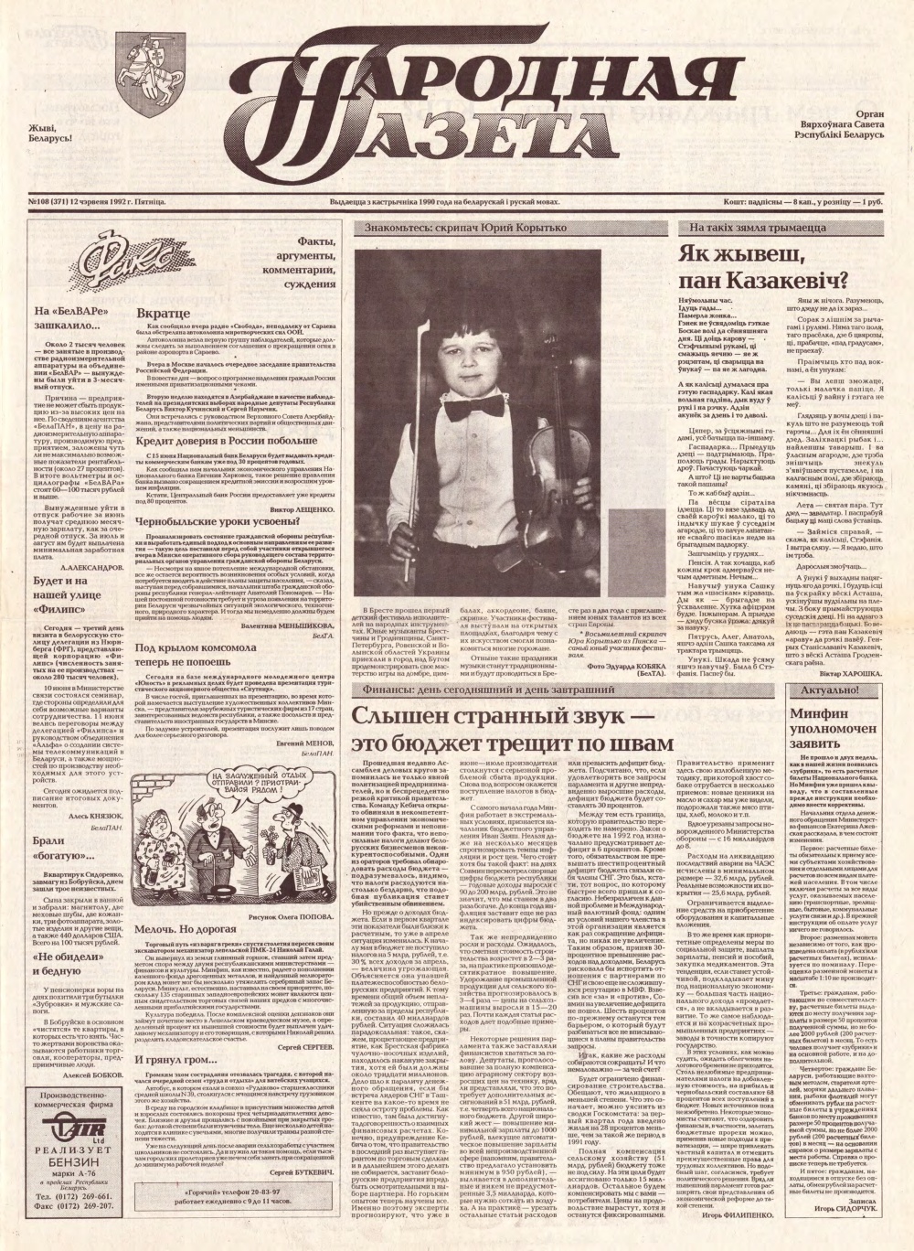 «Народная газета» — орган Вярхоўнага Савета Рэспублікі Беларусь. Выдавец: Адкрытае акцыянернае таварыства Народная газета. Выходзіць штодзённа, акрамя нядзелі і панядзелка, 250 разоў у год. Выдаецца з кастрычніка 1990 года на беларускай і рускай мовах. З 1990 па 1995 год пасаду галоўнага рэдактара «Народнай газеты» займаў Іосіф Сярэдзіч. З мая 1990 па студзень 1996 — дэпутат Вярхоўнага Савета XII склікання. Выданне займала ўмераную цэнтрысцкую пазыцыю, імкнучыся адлюстраваць палітычныя погляды большасці грамадзян. 17 сакавіка 1995 г. Указам № 113 Аляксандр Лукашэнка прызначыў галоўным рэдактарам «Народнай газеты» Мікалая Галко, не зважаючы на тое, што правам прызначаць галоўнага рэдактара сваёй уласнай газеты валодаў толькі Вярхоўны савет.