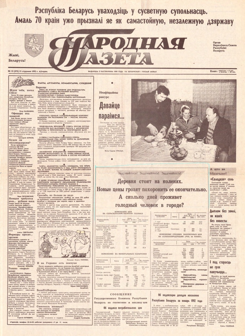 «Народная газета» — орган Вярхоўнага Савета Рэспублікі Беларусь. Выдавец: Адкрытае акцыянернае таварыства Народная газета. Выходзіць штодзённа, акрамя нядзелі і панядзелка, 250 разоў у год. Выдаецца з кастрычніка 1990 года на беларускай і рускай мовах. З 1990 па 1995 год пасаду галоўнага рэдактара «Народнай газеты» займаў Іосіф Сярэдзіч. З мая 1990 па студзень 1996 — дэпутат Вярхоўнага Савета XII склікання. Выданне займала ўмераную цэнтрысцкую пазыцыю, імкнучыся адлюстраваць палітычныя погляды большасці грамадзян. 17 сакавіка 1995 г. Указам № 113 Аляксандр Лукашэнка прызначыў галоўным рэдактарам «Народнай газеты» Мікалая Галко, не зважаючы на тое, што правам прызначаць галоўнага рэдактара сваёй уласнай газеты валодаў толькі Вярхоўны савет.