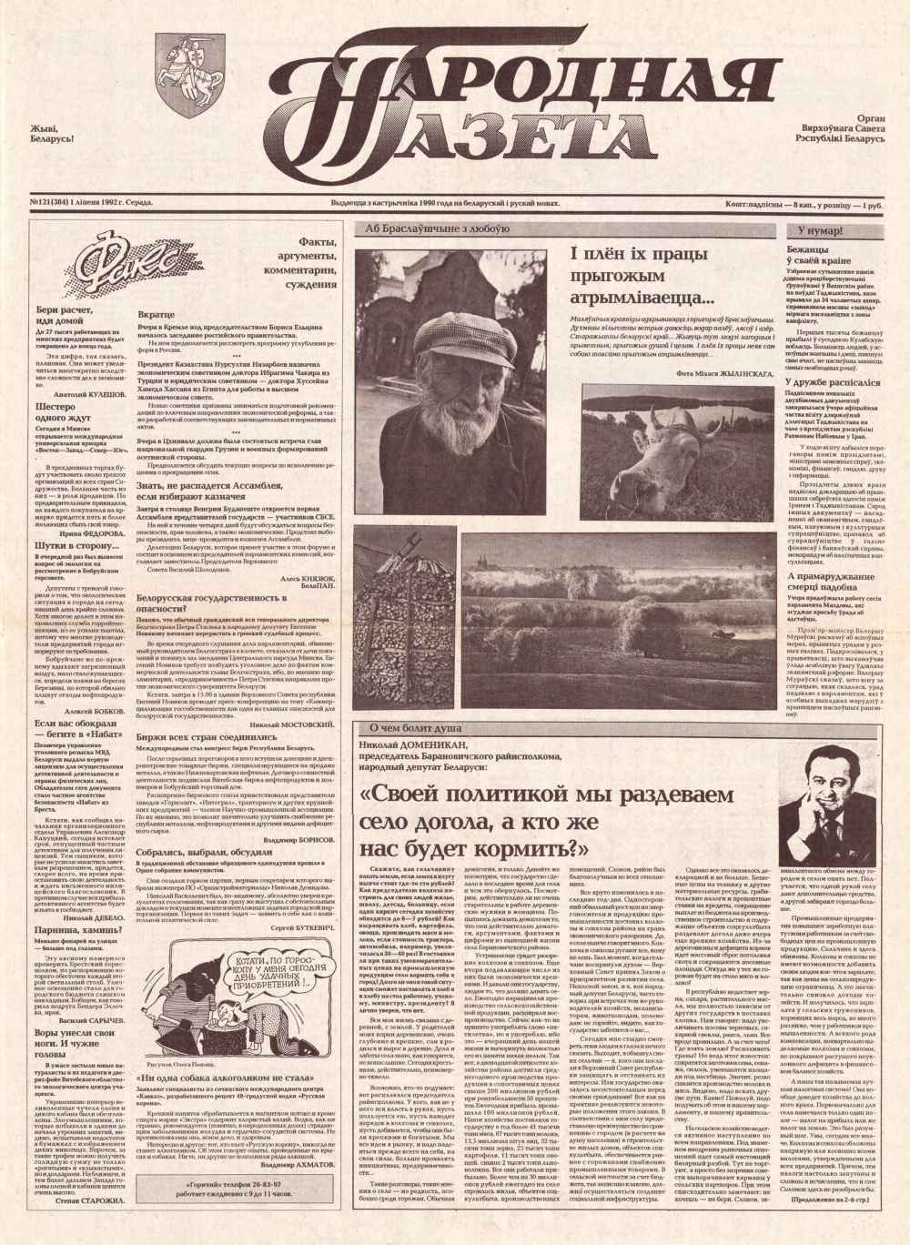 «Народная газета» — орган Вярхоўнага Савета Рэспублікі Беларусь. Выдавец: Адкрытае акцыянернае таварыства Народная газета. Выходзіць штодзённа, акрамя нядзелі і панядзелка, 250 разоў у год. Выдаецца з кастрычніка 1990 года на беларускай і рускай мовах. З 1990 па 1995 год пасаду галоўнага рэдактара «Народнай газеты» займаў Іосіф Сярэдзіч. З мая 1990 па студзень 1996 — дэпутат Вярхоўнага Савета XII склікання. Выданне займала ўмераную цэнтрысцкую пазыцыю, імкнучыся адлюстраваць палітычныя погляды большасці грамадзян. 17 сакавіка 1995 г. Указам № 113 Аляксандр Лукашэнка прызначыў галоўным рэдактарам «Народнай газеты» Мікалая Галко, не зважаючы на тое, што правам прызначаць галоўнага рэдактара сваёй уласнай газеты валодаў толькі Вярхоўны савет.