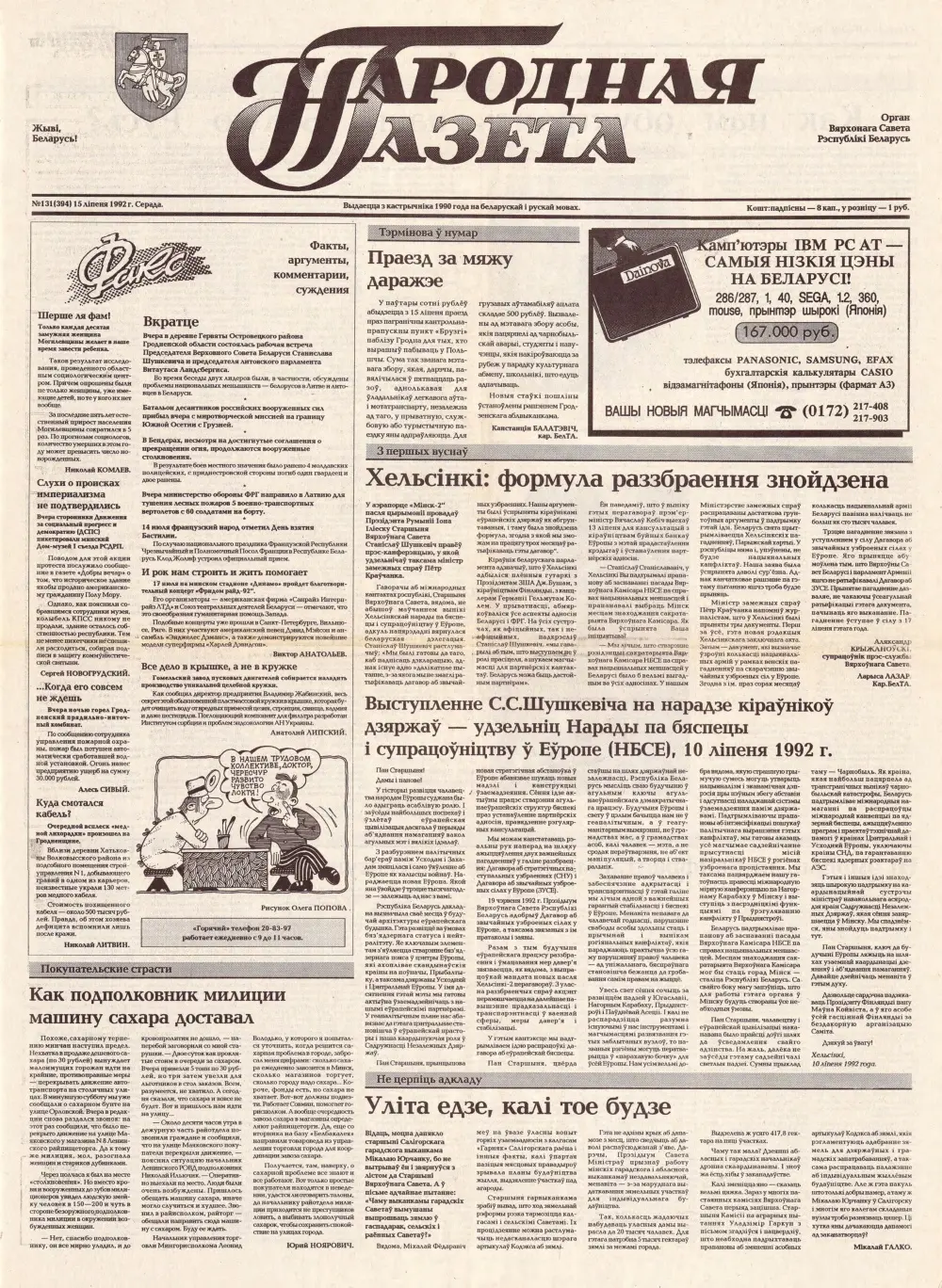 «Народная газета» — орган Вярхоўнага Савета Рэспублікі Беларусь. Выдавец: Адкрытае акцыянернае таварыства Народная газета. Выходзіць штодзённа, акрамя нядзелі і панядзелка, 250 разоў у год. Выдаецца з кастрычніка 1990 года на беларускай і рускай мовах. З 1990 па 1995 год пасаду галоўнага рэдактара «Народнай газеты» займаў Іосіф Сярэдзіч. З мая 1990 па студзень 1996 — дэпутат Вярхоўнага Савета XII склікання. Выданне займала ўмераную цэнтрысцкую пазыцыю, імкнучыся адлюстраваць палітычныя погляды большасці грамадзян. 17 сакавіка 1995 г. Указам № 113 Аляксандр Лукашэнка прызначыў галоўным рэдактарам «Народнай газеты» Мікалая Галко, не зважаючы на тое, што правам прызначаць галоўнага рэдактара сваёй уласнай газеты валодаў толькі Вярхоўны савет.