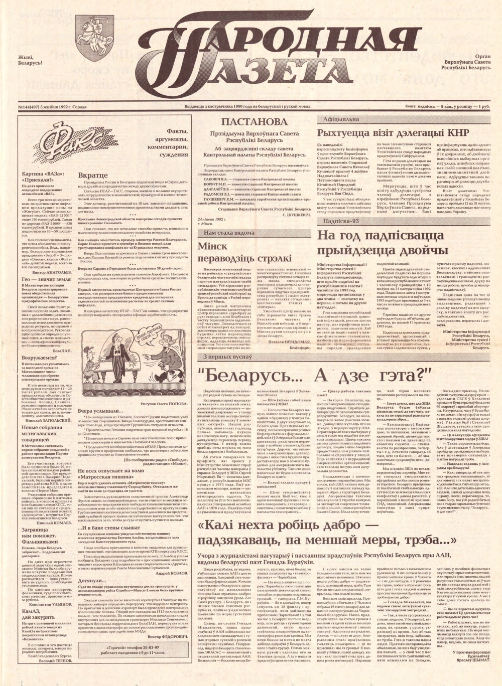 «Народная газета» — орган Вярхоўнага Савета Рэспублікі Беларусь. Выдавец: Адкрытае акцыянернае таварыства Народная газета. Выходзіць штодзённа, акрамя нядзелі і панядзелка, 250 разоў у год. Выдаецца з кастрычніка 1990 года на беларускай і рускай мовах. З 1990 па 1995 год пасаду галоўнага рэдактара «Народнай газеты» займаў Іосіф Сярэдзіч. З мая 1990 па студзень 1996 — дэпутат Вярхоўнага Савета XII склікання. Выданне займала ўмераную цэнтрысцкую пазыцыю, імкнучыся адлюстраваць палітычныя погляды большасці грамадзян. 17 сакавіка 1995 г. Указам № 113 Аляксандр Лукашэнка прызначыў галоўным рэдактарам «Народнай газеты» Мікалая Галко, не зважаючы на тое, што правам прызначаць галоўнага рэдактара сваёй уласнай газеты валодаў толькі Вярхоўны савет.