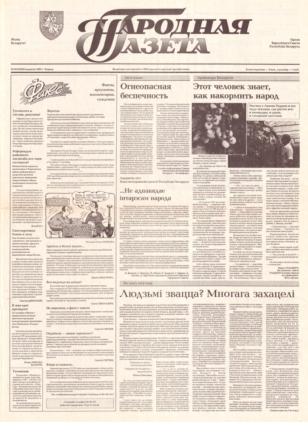 «Народная газета» — орган Вярхоўнага Савета Рэспублікі Беларусь. Выдавец: Адкрытае акцыянернае таварыства Народная газета. Выходзіць штодзённа, акрамя нядзелі і панядзелка, 250 разоў у год. Выдаецца з кастрычніка 1990 года на беларускай і рускай мовах. З 1990 па 1995 год пасаду галоўнага рэдактара «Народнай газеты» займаў Іосіф Сярэдзіч. З мая 1990 па студзень 1996 — дэпутат Вярхоўнага Савета XII склікання. Выданне займала ўмераную цэнтрысцкую пазыцыю, імкнучыся адлюстраваць палітычныя погляды большасці грамадзян. 17 сакавіка 1995 г. Указам № 113 Аляксандр Лукашэнка прызначыў галоўным рэдактарам «Народнай газеты» Мікалая Галко, не зважаючы на тое, што правам прызначаць галоўнага рэдактара сваёй уласнай газеты валодаў толькі Вярхоўны савет.