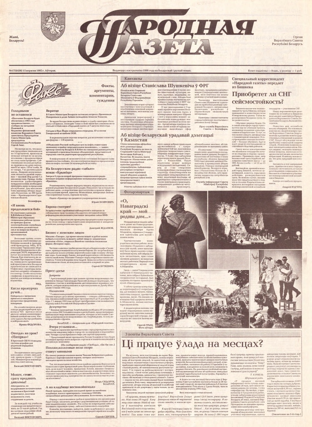 «Народная газета» — орган Вярхоўнага Савета Рэспублікі Беларусь. Выдавец: Адкрытае акцыянернае таварыства Народная газета. Выходзіць штодзённа, акрамя нядзелі і панядзелка, 250 разоў у год. Выдаецца з кастрычніка 1990 года на беларускай і рускай мовах. З 1990 па 1995 год пасаду галоўнага рэдактара «Народнай газеты» займаў Іосіф Сярэдзіч. З мая 1990 па студзень 1996 — дэпутат Вярхоўнага Савета XII склікання. Выданне займала ўмераную цэнтрысцкую пазыцыю, імкнучыся адлюстраваць палітычныя погляды большасці грамадзян. 17 сакавіка 1995 г. Указам № 113 Аляксандр Лукашэнка прызначыў галоўным рэдактарам «Народнай газеты» Мікалая Галко, не зважаючы на тое, што правам прызначаць галоўнага рэдактара сваёй уласнай газеты валодаў толькі Вярхоўны савет.