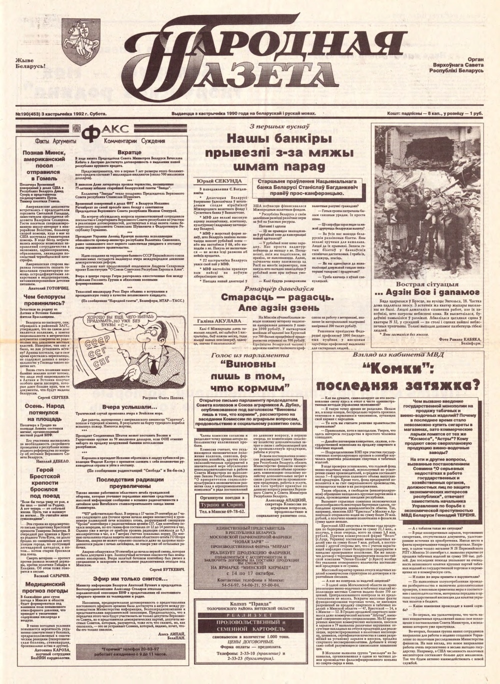 «Народная газета» — орган Вярхоўнага Савета Рэспублікі Беларусь. Выдавец: Адкрытае акцыянернае таварыства Народная газета. Выходзіць штодзённа, акрамя нядзелі і панядзелка, 250 разоў у год. Выдаецца з кастрычніка 1990 года на беларускай і рускай мовах. З 1990 па 1995 год пасаду галоўнага рэдактара «Народнай газеты» займаў Іосіф Сярэдзіч. З мая 1990 па студзень 1996 — дэпутат Вярхоўнага Савета XII склікання. Выданне займала ўмераную цэнтрысцкую пазыцыю, імкнучыся адлюстраваць палітычныя погляды большасці грамадзян. 17 сакавіка 1995 г. Указам № 113 Аляксандр Лукашэнка прызначыў галоўным рэдактарам «Народнай газеты» Мікалая Галко, не зважаючы на тое, што правам прызначаць галоўнага рэдактара сваёй уласнай газеты валодаў толькі Вярхоўны савет.