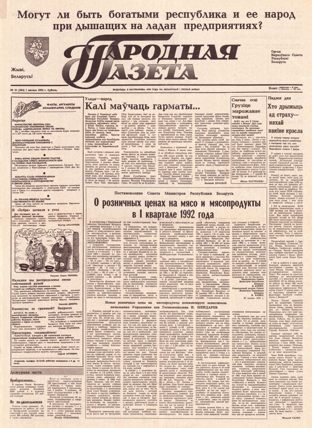 «Народная газета» — орган Вярхоўнага Савета Рэспублікі Беларусь. Выдавец: Адкрытае акцыянернае таварыства Народная газета. Выходзіць штодзённа, акрамя нядзелі і панядзелка, 250 разоў у год. Выдаецца з кастрычніка 1990 года на беларускай і рускай мовах. З 1990 па 1995 год пасаду галоўнага рэдактара «Народнай газеты» займаў Іосіф Сярэдзіч. З мая 1990 па студзень 1996 — дэпутат Вярхоўнага Савета XII склікання. Выданне займала ўмераную цэнтрысцкую пазыцыю, імкнучыся адлюстраваць палітычныя погляды большасці грамадзян. 17 сакавіка 1995 г. Указам № 113 Аляксандр Лукашэнка прызначыў галоўным рэдактарам «Народнай газеты» Мікалая Галко, не зважаючы на тое, што правам прызначаць галоўнага рэдактара сваёй уласнай газеты валодаў толькі Вярхоўны савет.