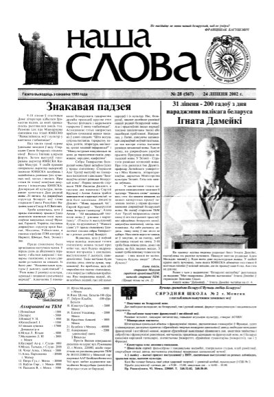 Газета “Наша слова” - газета Грамадскага аб’яднання “ТБМ імя Ф. Скарыны”, якое знаходзіцца на пярэднім краі барацьбы за нацыянальнае адраджэнне беларускага этнасу. Газета заснавана ў сакавіку 1990 года і да 1997 года выходзіла ў Менску. З лістапада 1997 года газета больш за 9 гадоў выдавалася Лідскай гарадской арганізацыя ГА “ТБМ імя Ф. Скарыны”. З 1 лютага 2007 года выдаўцом газеты “Наша слова” з’яўляецца Установа інфармацыі “Выдавецкі дом ТБМ”, зарэгістраваная ў Лідзе Гарадзенскай вобласці. Рэдактар газеты з 1997 года Станіслаў Суднік, сябар Беларускай асацыяцыі журналістаў і Саюза беларускіх пісьменнікаў. У рэдкалегію газеты ўваходзяць знакавыя людзі Беларусі - навукоўцы, пісьменнікі, грамадскія актывісты. Газета друкуе афіцыйную хроніку дзейнасці Таварыства беларускай мовы імя Ф. Скарыны і асвятляе дзейнасць іншых грамадскіх арганізацый дэмакратычнага кірунку а таксама асноўныя падзеі культурнага і грамадскага жыцця краіны. Сярод аўтараў не адзін дзесятак дактароў і кандыдатаў навук, здараюцца акадэмікі. Газета з’яўляецца пілотнай структурай у арганізацыі шматлікіх кампаній па зборы подпісаў з самай рознай нагоды, друкуе звароты, бланкі, а грамадзяне збіраюць подпісы і атакуюць уладу ці то па пытаннях мовы, па пытаннях адукацыі, культуры, ці то па пытаннях назову і пераназову вуліцаў. Гэтыя кампаніі ТБМ вядзе бесперапынна, трымаючы ўладныя структуры пад пастаянным ціскам і дабіваючыся перманентных поспехаў па розных кірунках. Усё гэта без газеты было б немагчыма.