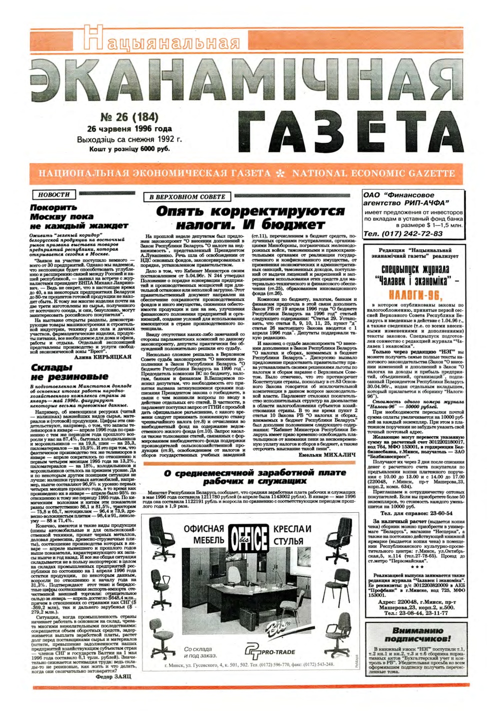 «Нацыянальная эканамічная газета» — «Нацыянальная эканамічная газета» — заснаваная часопісам «Чалавек і эканоміка». Найстарэйшае эканамічнае выданне ў Рэспубліцы Беларусь. Выходзіць са снежня 1992 года. Газета адной з першых узялася за эканамічную адукацыю, выхаванне спецыялістаў новай фармацыі ў перыяд пераходу ад адміністрацыйна-каманднай сістэмы гаспадарання да рынку. Праблемы макраэканомікі і фінансаў, бухгалтарскага ўліку і падаткаабкладання, гаспадарчага і працоўнага права і знешнеэканамічнай дзейнасці, цэнаўтварэння і статыстыкі, аўдыту і кансалтынгу - усё гэта знаходзіць сваё адлюстраванне ў газеце. З 1998 года выходзіць пад назвай «Нацинальная экономическая газета».