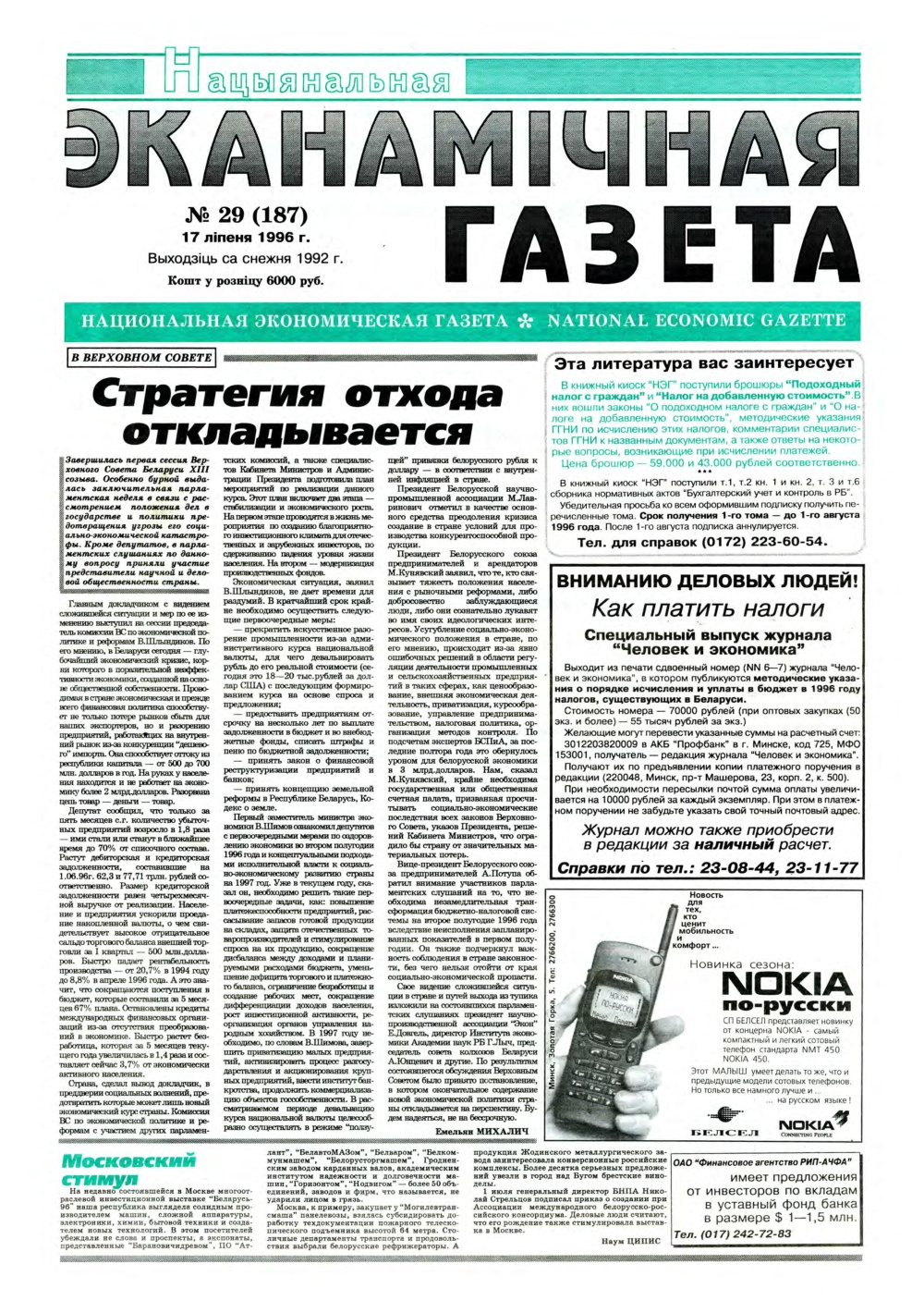 «Нацыянальная эканамічная газета» — «Нацыянальная эканамічная газета» — заснаваная часопісам «Чалавек і эканоміка». Найстарэйшае эканамічнае выданне ў Рэспубліцы Беларусь. Выходзіць са снежня 1992 года. Газета адной з першых узялася за эканамічную адукацыю, выхаванне спецыялістаў новай фармацыі ў перыяд пераходу ад адміністрацыйна-каманднай сістэмы гаспадарання да рынку. Праблемы макраэканомікі і фінансаў, бухгалтарскага ўліку і падаткаабкладання, гаспадарчага і працоўнага права і знешнеэканамічнай дзейнасці, цэнаўтварэння і статыстыкі, аўдыту і кансалтынгу - усё гэта знаходзіць сваё адлюстраванне ў газеце. З 1998 года выходзіць пад назвай «Нацинальная экономическая газета».