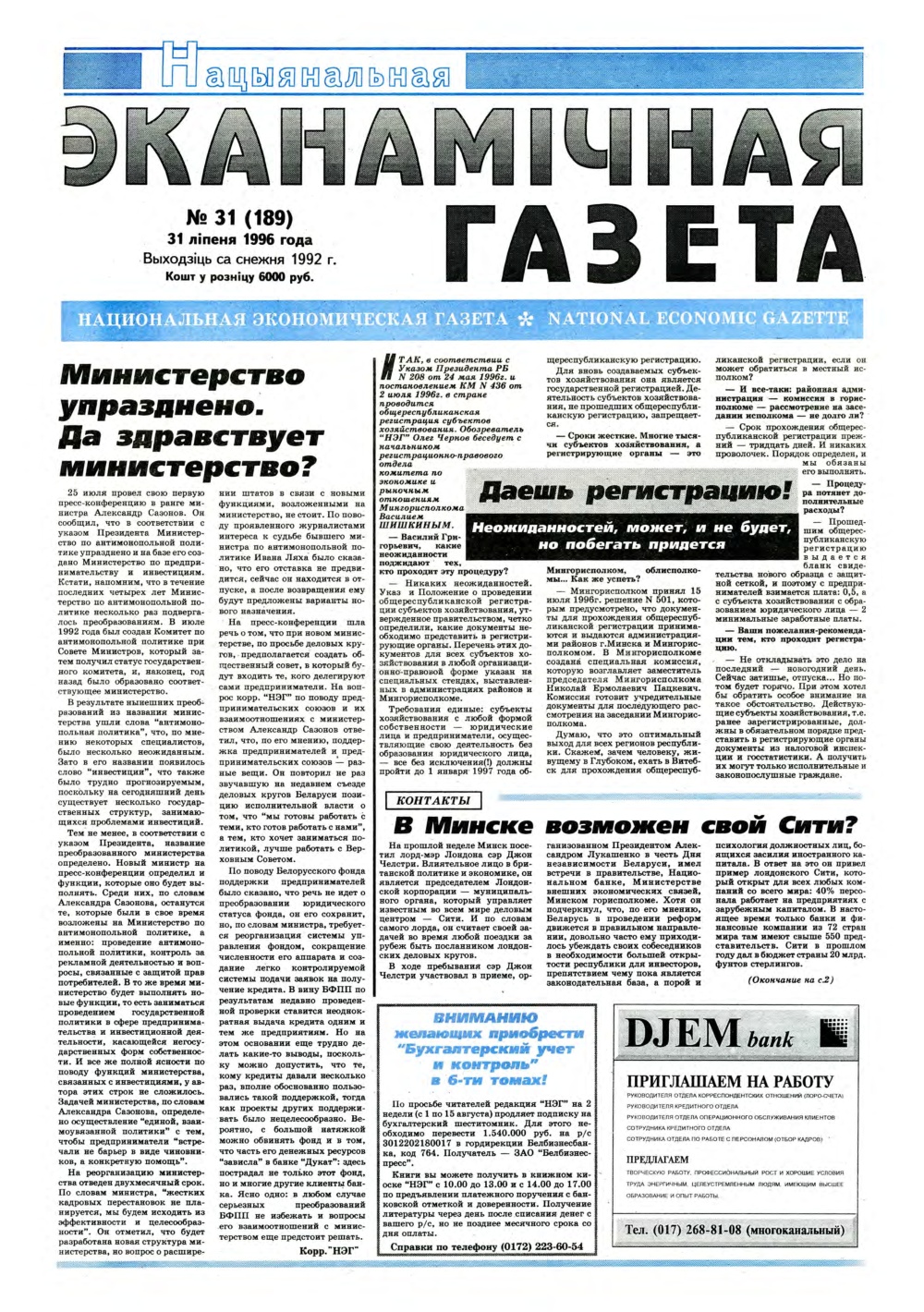 Нацыянальная эканамічная газета 31 (189) 1996