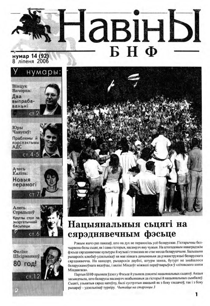 «Навіны БНФ - Распаўсюджваецца бясплатна на правох унутранай дакумэнтацыі. Галоўны рэдпктар: Юры Гембіцкі, выпускны рэдпктар: Франак Вячорка.