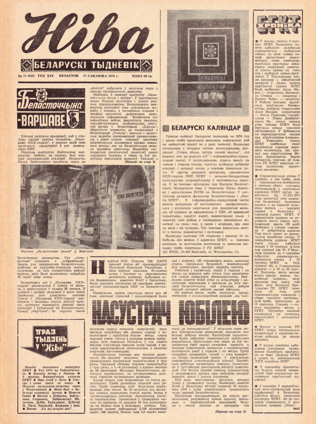 «Ніва» — штотыднёвая газета, якая выдаецца на беларускай мове ў Беластоку. Газета была заснавана ў 1956 Беларускім грамадска-культурным таварыствам. Зараз яе выдае Праграмная рада тыднёвіка «Ніва». Газета асвятляе штодзённае жыццё беларусаў у Польшчы, дзейнасць грамадскіх арганізацый, друкуе матэрыялы па краязнаўстве, змяшчае артыкулы, прысвечаныя актуальным падзеям на Беларусі. Выходзіць старонка для дзяцей «Зорка», перыядычна змяшчаюцца тэматычныя ўкладкі. Газета сталася важным чыннікам яднання беларускага насельніцтва ў Польшчы. Цяпер газэта выдаецца Праграмнай радай тыднёвіка беларусаў у Польшчы «Ніва».