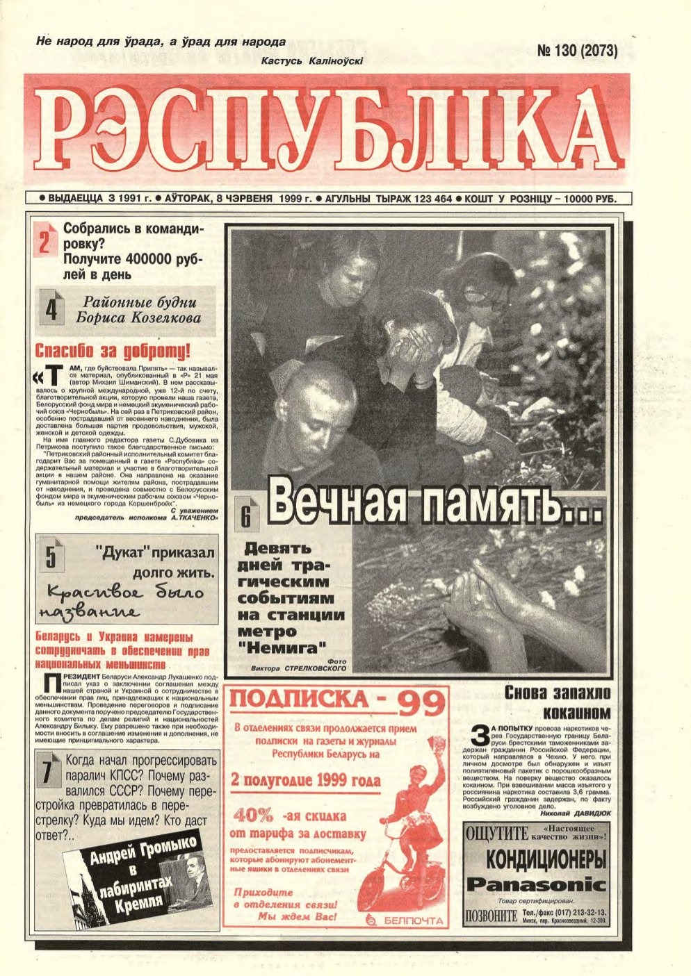 «Рэспубліка» — газета для тых, хто самастойна прымае рашэнні. Заснавальнік - Савет Міністраў Рэспублікі Беларусь. Выдаецца з чэрвеня 1991. Газета выходзіць 250 разоў у год. Аўтары апублікаваных матэрыялаў нясуць адказнасць за падбор і дакладнасць фактаў, іх меркаванні неабавязкова адлюстроўваюць пункт гледжання рэдакцыі. Рукапісы, фотаздымкі і малюнкі не рэцэнзуюцца і не вяртаюцца.