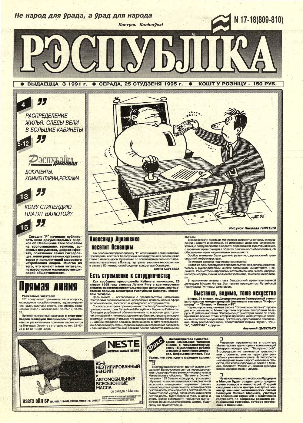 «Рэспубліка» — газета для тых, хто самастойна прымае рашэнні. Заснавальнік - Савет Міністраў Рэспублікі Беларусь. Выдаецца з чэрвеня 1991. Газета выходзіць 250 разоў у год. Аўтары апублікаваных матэрыялаў нясуць адказнасць за падбор і дакладнасць фактаў, іх меркаванні неабавязкова адлюстроўваюць пункт гледжання рэдакцыі. Рукапісы, фотаздымкі і малюнкі не рэцэнзуюцца і не вяртаюцца.
