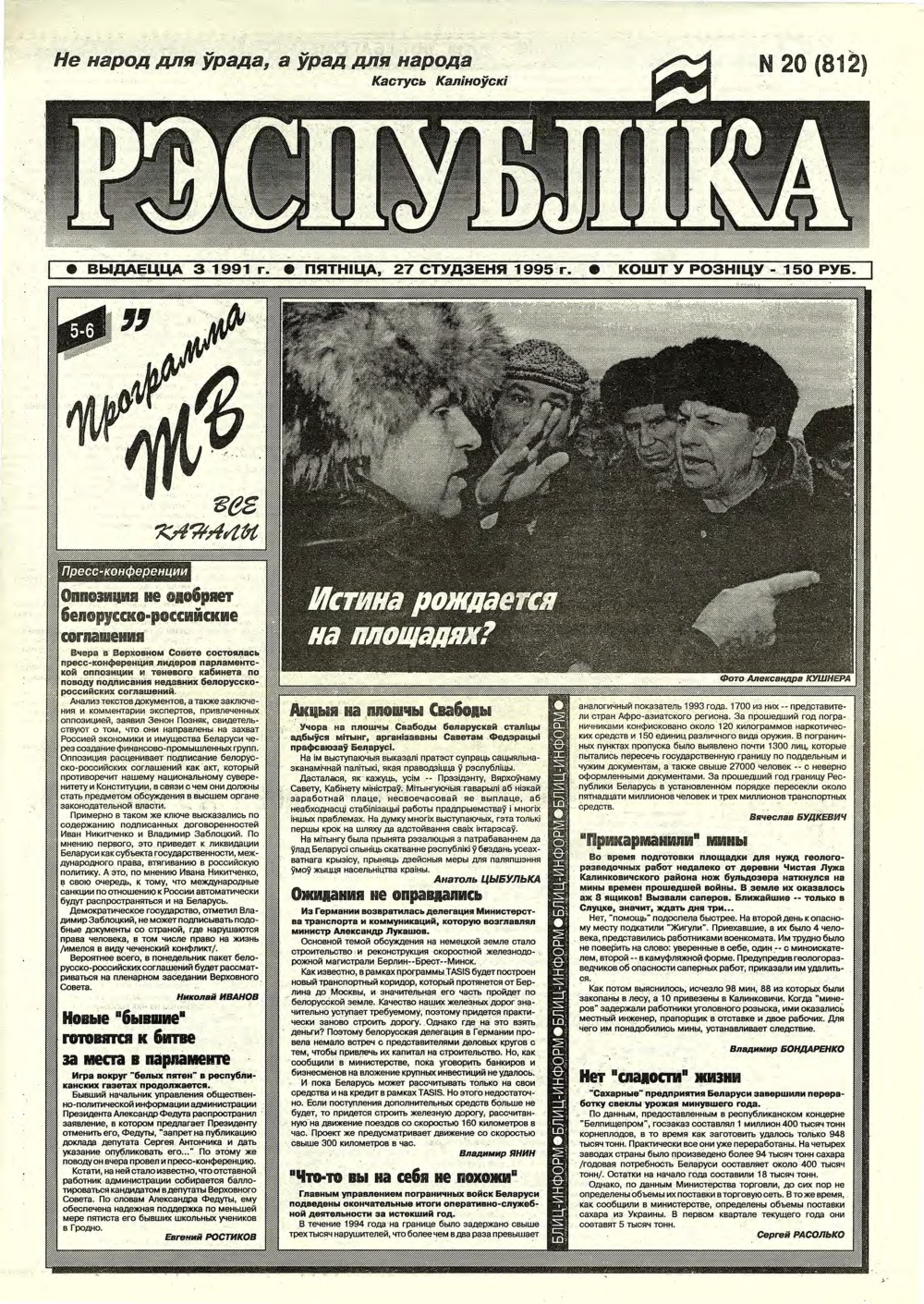 «Рэспубліка» — газета для тых, хто самастойна прымае рашэнні. Заснавальнік - Савет Міністраў Рэспублікі Беларусь. Выдаецца з чэрвеня 1991. Газета выходзіць 250 разоў у год. Аўтары апублікаваных матэрыялаў нясуць адказнасць за падбор і дакладнасць фактаў, іх меркаванні неабавязкова адлюстроўваюць пункт гледжання рэдакцыі. Рукапісы, фотаздымкі і малюнкі не рэцэнзуюцца і не вяртаюцца.