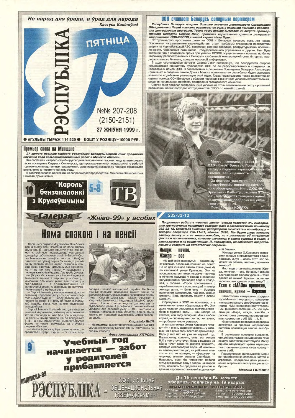 «Рэспубліка» — газета для тых, хто самастойна прымае рашэнні. Заснавальнік - Савет Міністраў Рэспублікі Беларусь. Выдаецца з чэрвеня 1991. Газета выходзіць 250 разоў у год. Аўтары апублікаваных матэрыялаў нясуць адказнасць за падбор і дакладнасць фактаў, іх меркаванні неабавязкова адлюстроўваюць пункт гледжання рэдакцыі. Рукапісы, фотаздымкі і малюнкі не рэцэнзуюцца і не вяртаюцца.