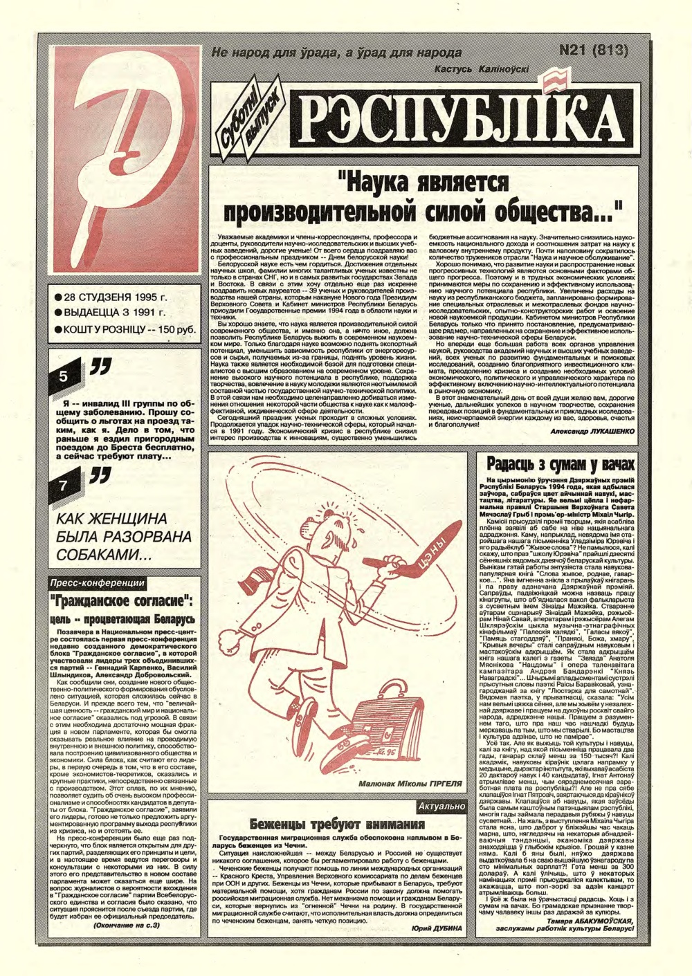 «Рэспубліка» — газета для тых, хто самастойна прымае рашэнні. Заснавальнік - Савет Міністраў Рэспублікі Беларусь. Выдаецца з чэрвеня 1991. Газета выходзіць 250 разоў у год. Аўтары апублікаваных матэрыялаў нясуць адказнасць за падбор і дакладнасць фактаў, іх меркаванні неабавязкова адлюстроўваюць пункт гледжання рэдакцыі. Рукапісы, фотаздымкі і малюнкі не рэцэнзуюцца і не вяртаюцца.