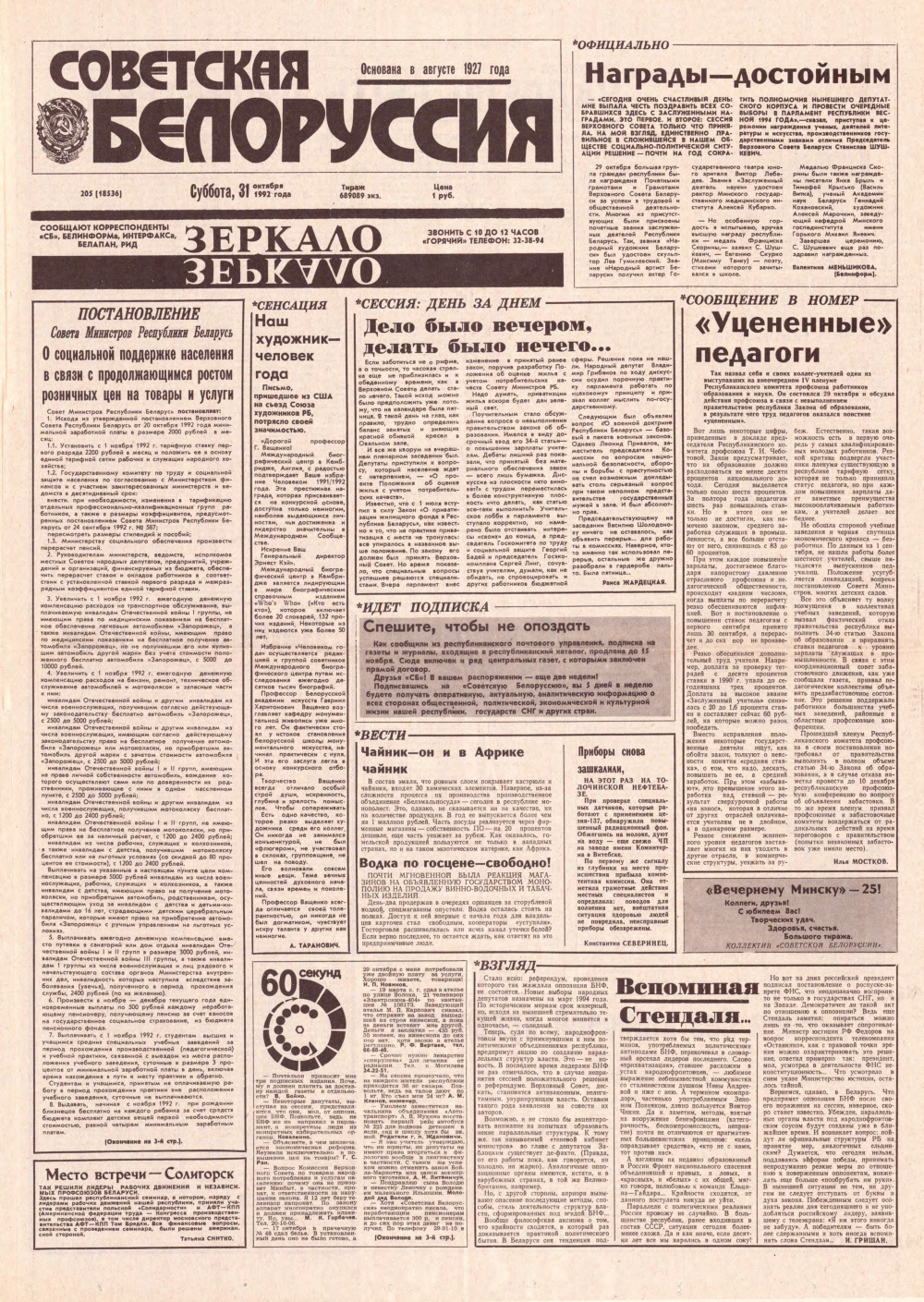 Советская Белоруссия 205 (18536) 1992