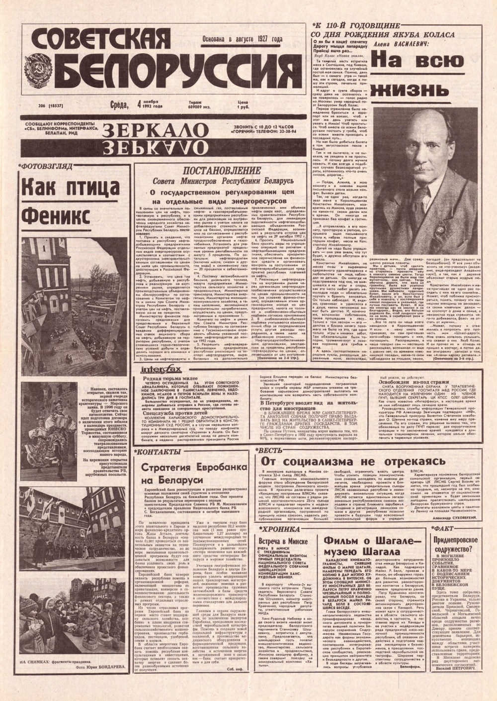 орган Центрального Комитета Коммунистической партии Белоруссии, Верховного Совета и Совета Министров БССР