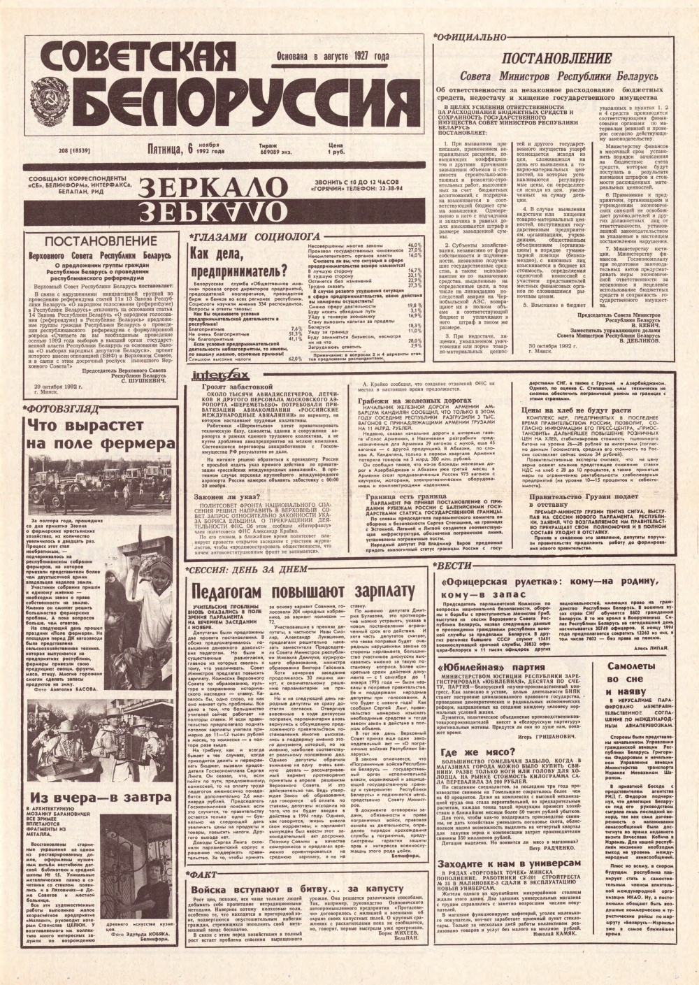 Советская Белоруссия 208 (18539) 1992