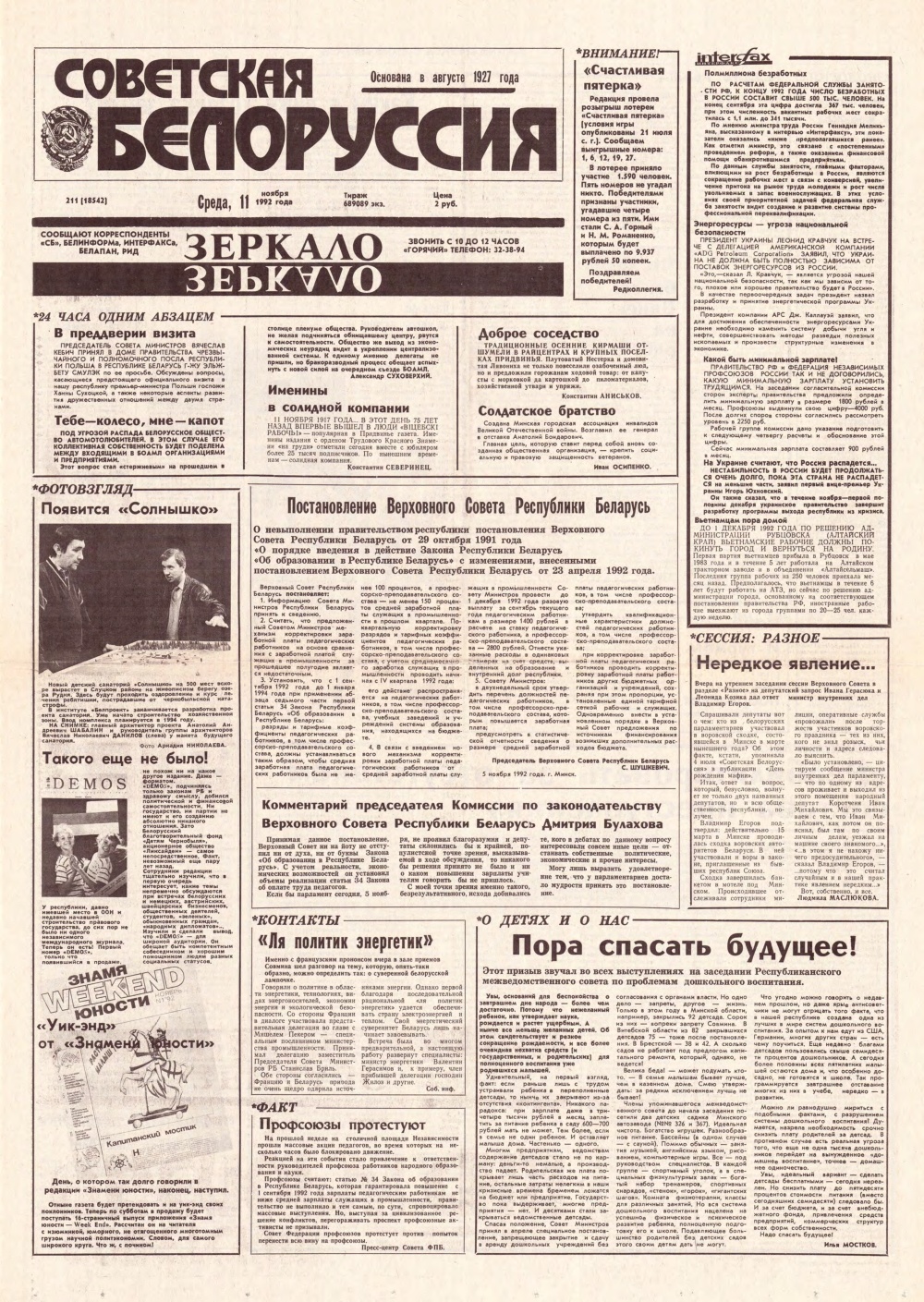 Советская Белоруссия 211 (18542) 1992