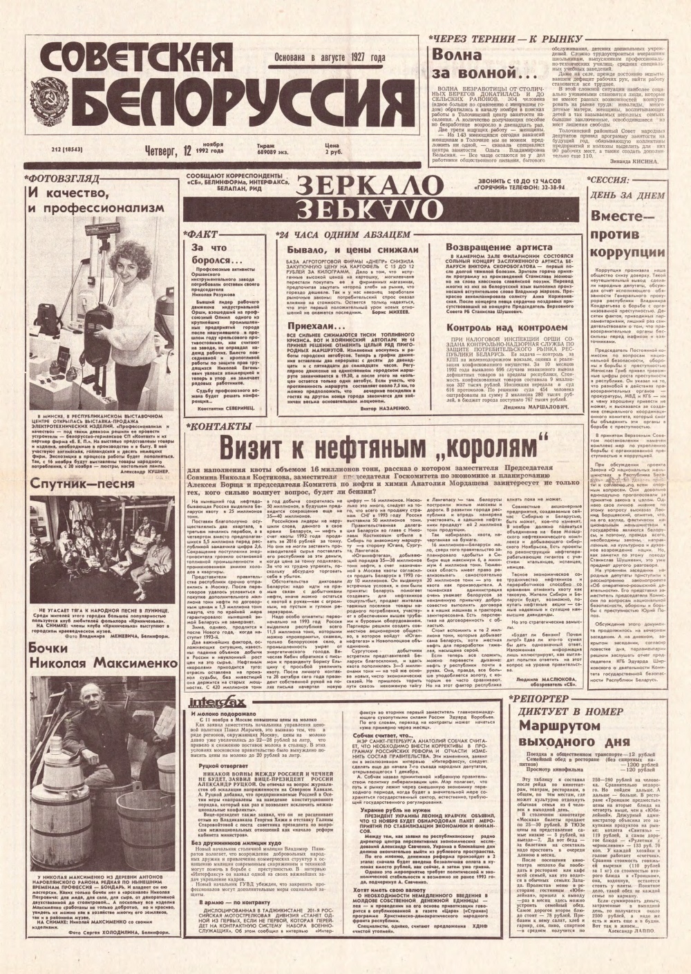орган Центрального Комитета Коммунистической партии Белоруссии, Верховного Совета и Совета Министров БССР