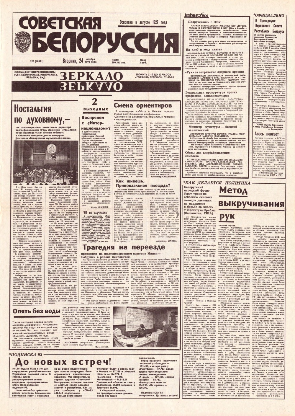 Советская Белоруссия 220 (18551) 1992