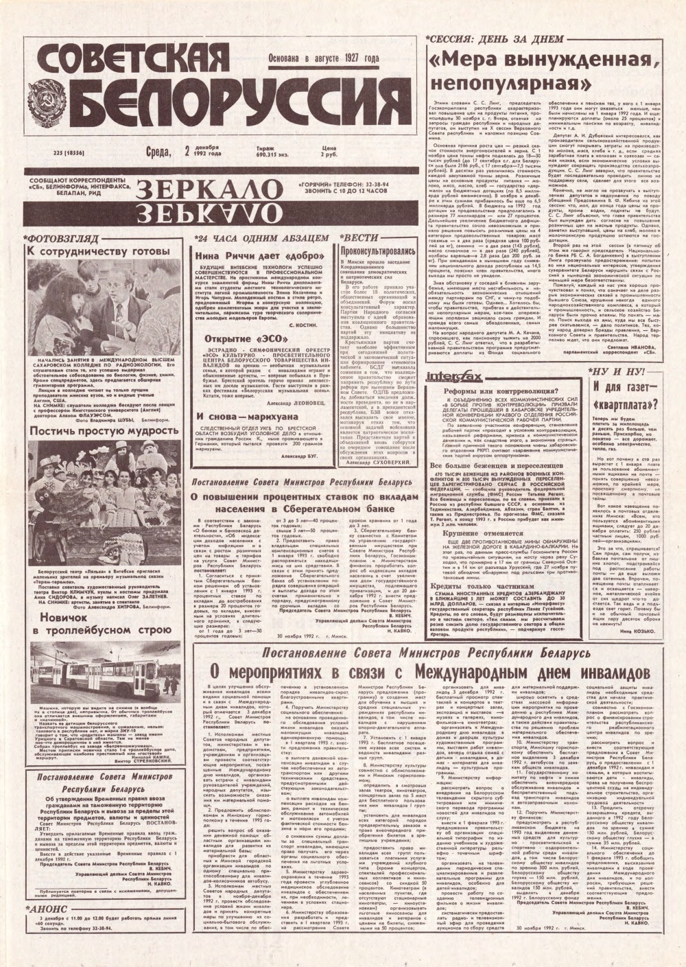 орган Центрального Комитета Коммунистической партии Белоруссии, Верховного Совета и Совета Министров БССР