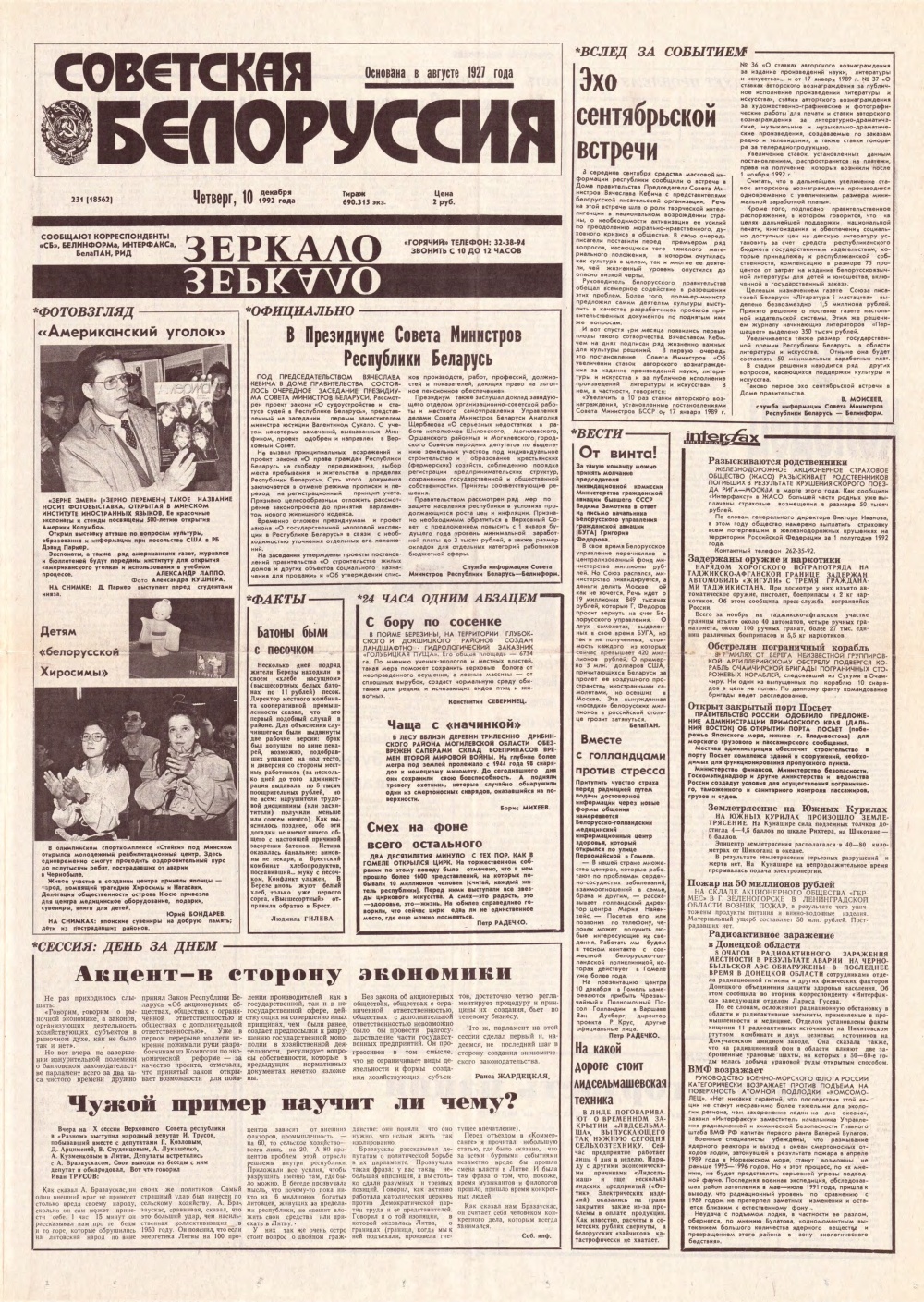 орган Центрального Комитета Коммунистической партии Белоруссии, Верховного Совета и Совета Министров БССР