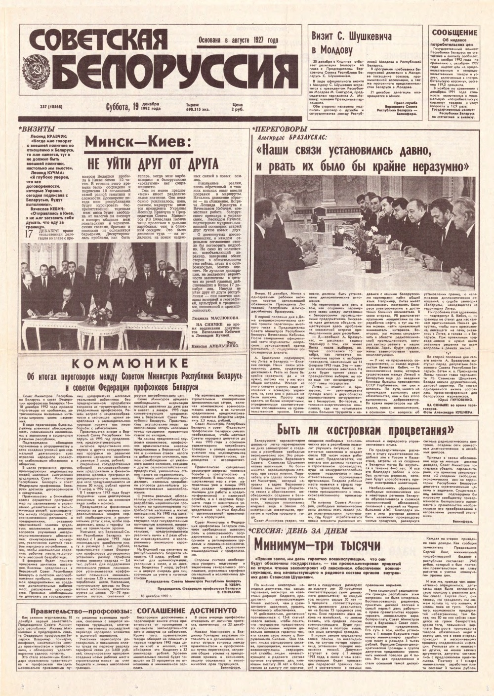 орган Центрального Комитета Коммунистической партии Белоруссии, Верховного Совета и Совета Министров БССР
