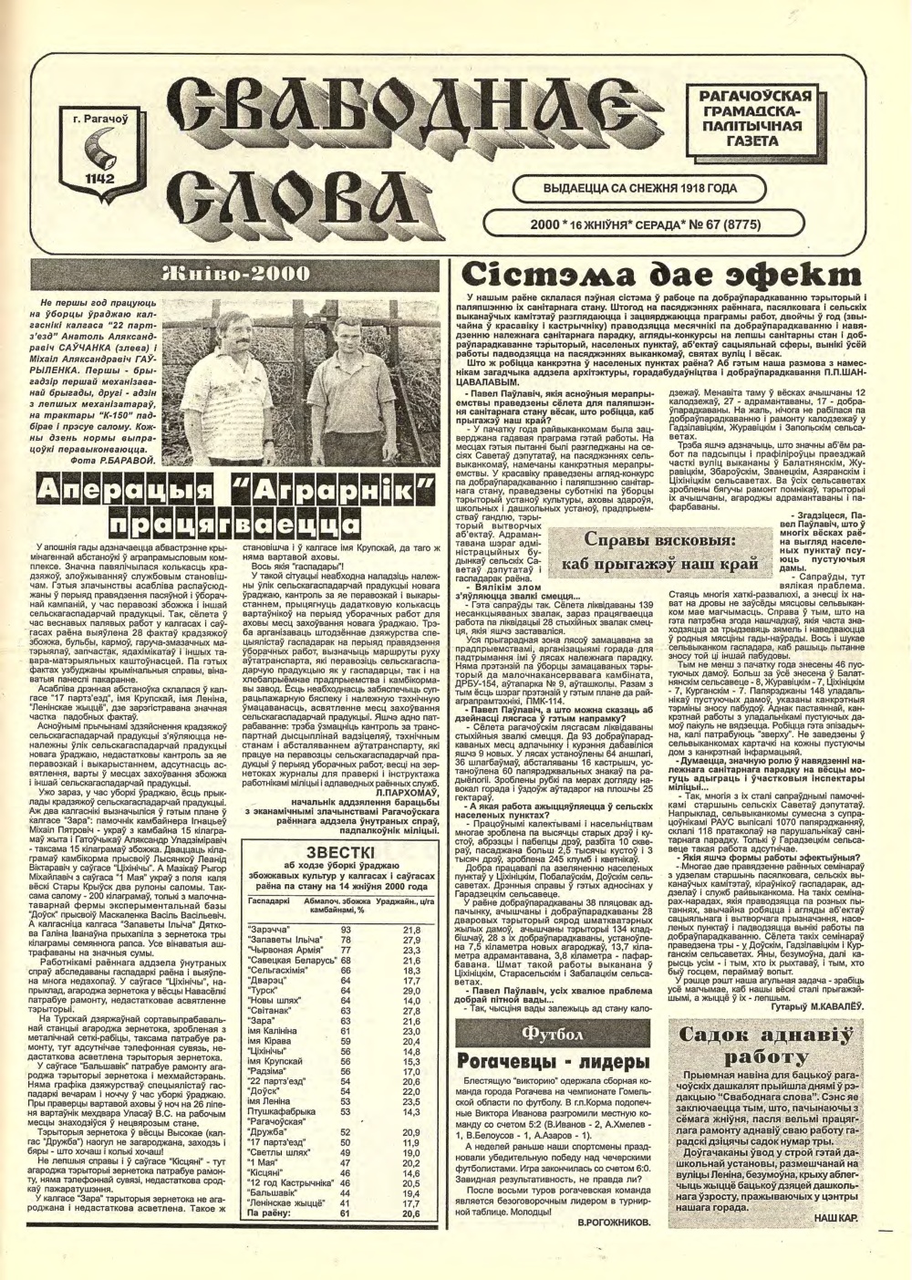 Свабоднае слова (Рагачоў) 67 (8775) 2000