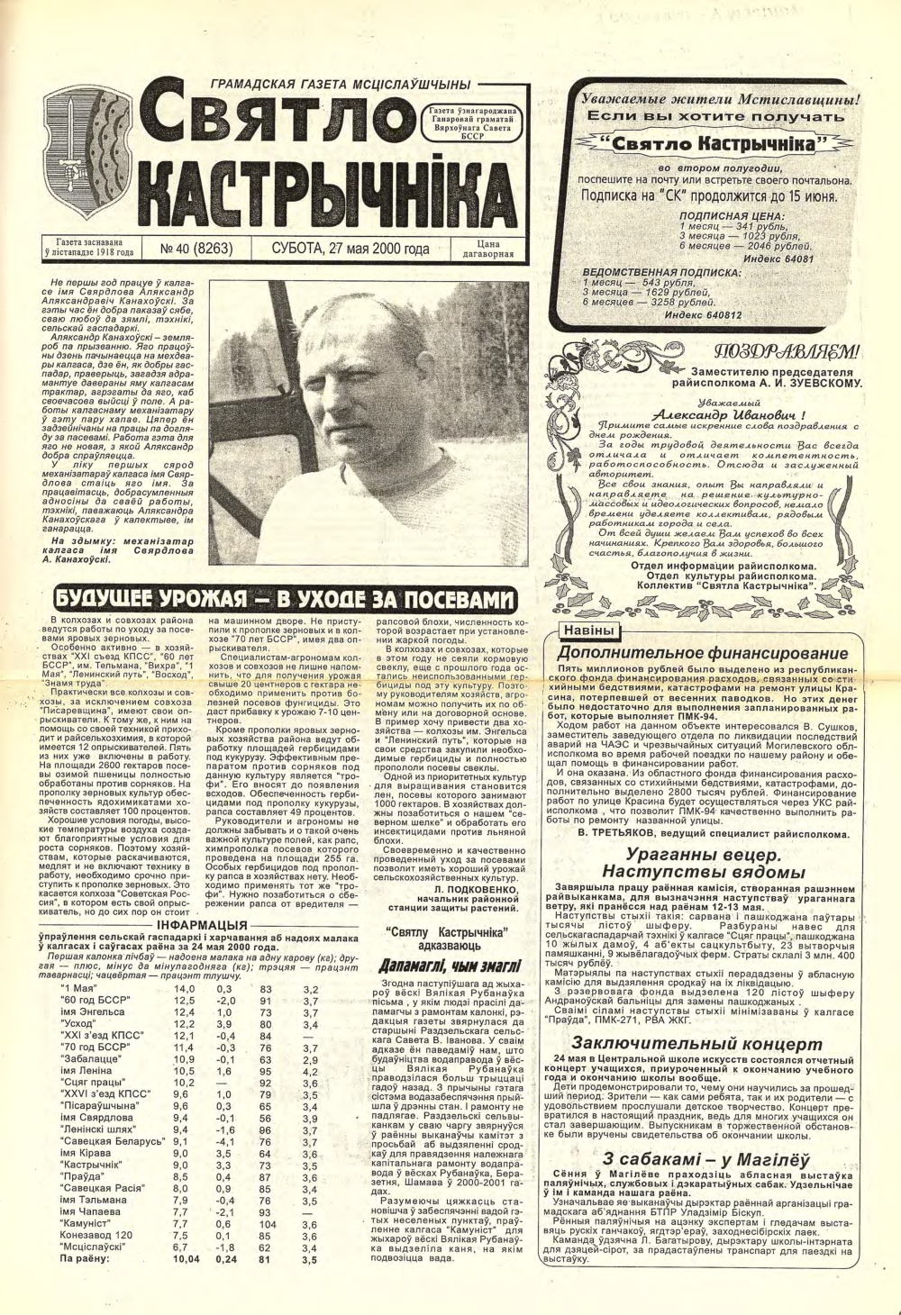 • Выдавец: Мсціслаўскі раённы выканаўчы камітэт, Мсціслаўскі раённы Савет дэпутатаў, працоўны калектыў рэдакцыі