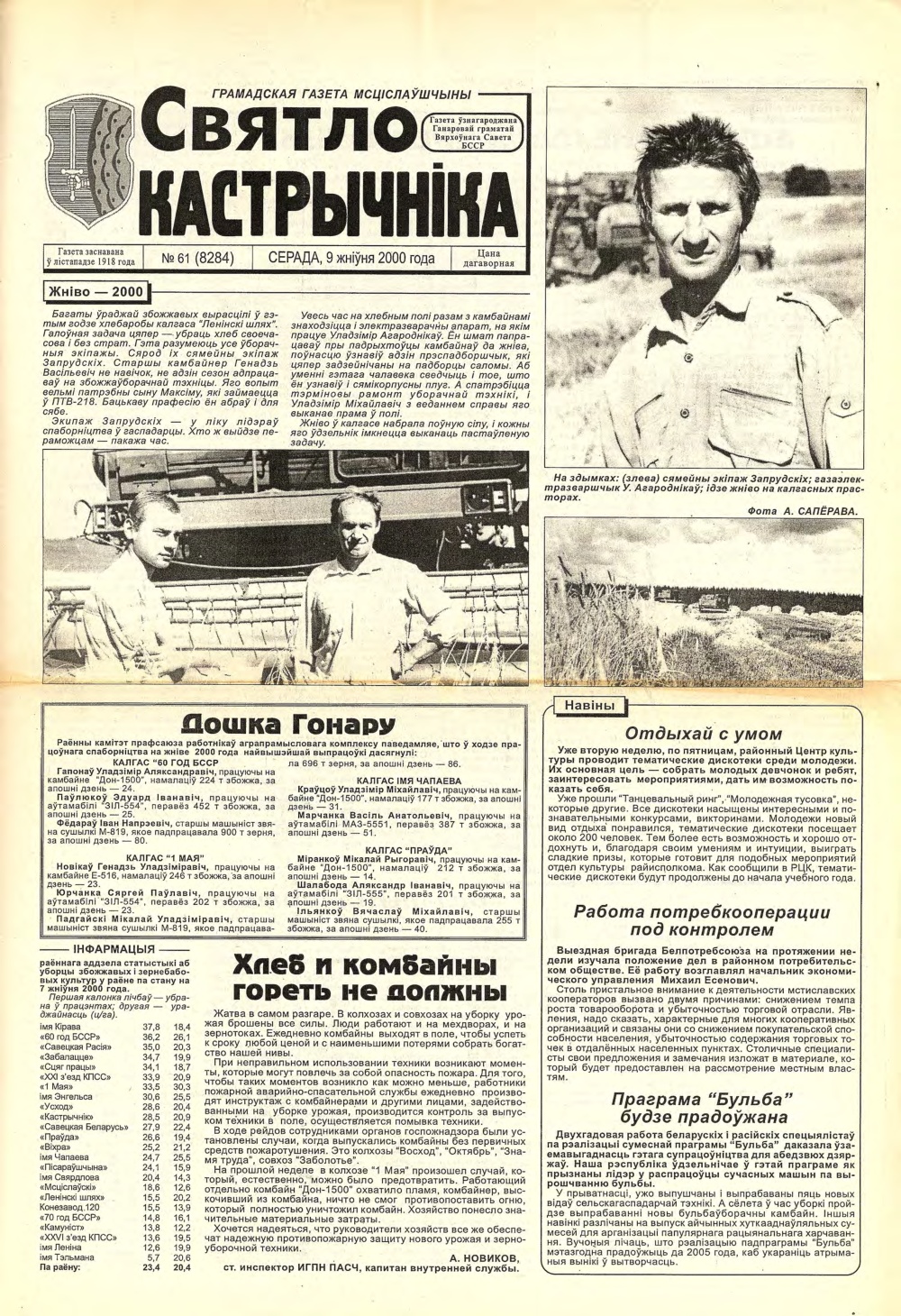 • Выдавец: Мсціслаўскі раённы выканаўчы камітэт, Мсціслаўскі раённы Савет дэпутатаў, працоўны калектыў рэдакцыі