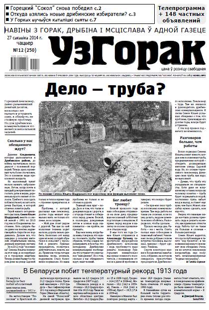 Житель деревни Кледневичи пытается решить коммунальную проблему многие годы. Горецкая хоккейная сборная "Сокол" снова стала лучшей в области. Почему в Дрибине на одном из округов количество избирателей выросло на 67%? У Горках, аказваецца, вучыўся каталіцкі святы. + 148 частных объявления, телепрограмма на неделю и местная реклама.