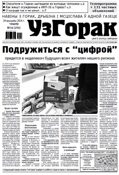 Абласная газета "УзГорак" выходзіць у Горацкім, Дрыбінскім і Мсціслаўскім раёнах па чацвяргах. Наклад - 1500 асобнікаў на тыдзень. Незалежныя навіны і каментарыі, тэлепраграма, прыватныя аб'явы, астрапрагноз і віншаванні.