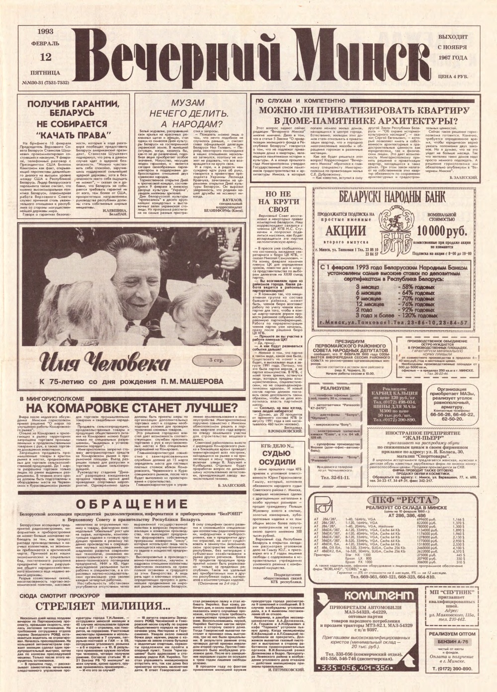 • Выдавец: трудовой коллектив редакции газеты Вечерний Минск