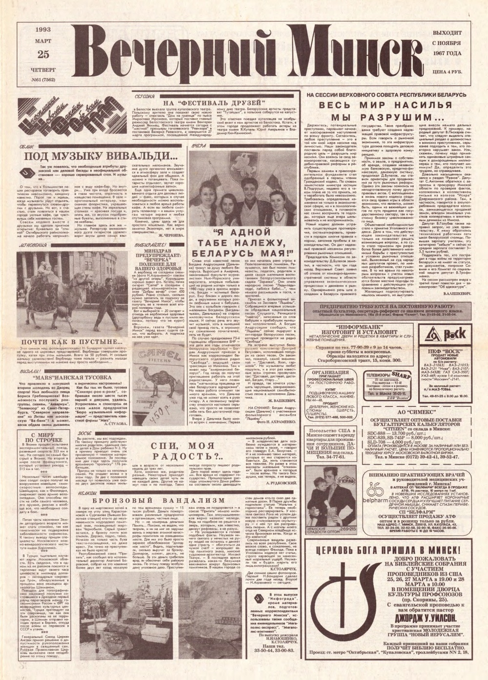 • Выдавец: трудовой коллектив редакции газеты Вечерний Минск