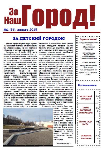 В рамках общественного обсуждения концепции застройки Юго-Западного района представители Белорусской социал-демократической партии (Грамада) и кампании «Говори правду» направили предложения местным властям г. Бреста.... Болей »