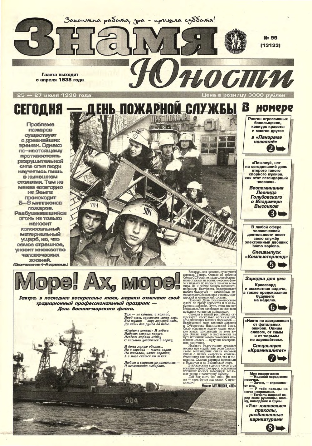 «Знамя юности» — общественно-политическая газета Белоруссии. Газета образована в 1938 году как совместный печатный орган Центрального комитета и Минского областного комитета ЛКСМ Белоруссии. Первый номер вышел 10 апреля 1938 года. Называлась газета «Сталинская молодёжь». Учредителем газеты с 1956 года являлся ЦК ЛКСМ Белоруссии. В годы Великой Отечественной войны газета выходила на одном из фронтов Красной Армии в виде листовки формата А4. Первый полноформатный послевоенный номер газеты «Сталинская молодёжь» вышел 6 июля 1945 года. В июне 1956 года газета «Сталинская молодёжь» переименована в газету «Знамя юности». Крыніца: ru.wikipedia.org