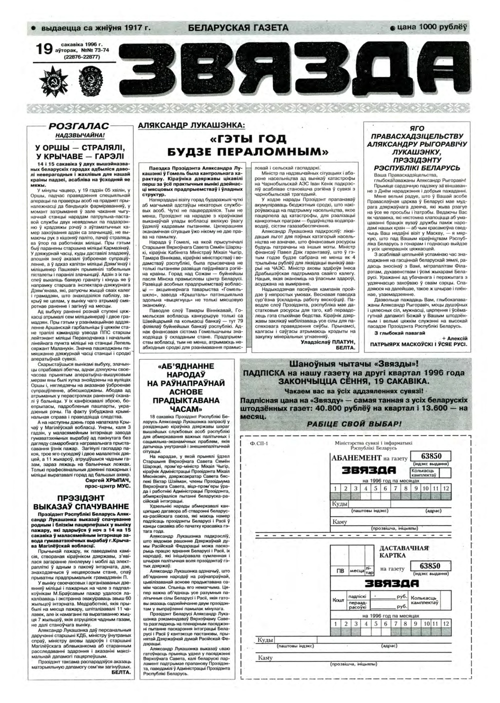 Звязда 73-74 (22876-22877) 1996